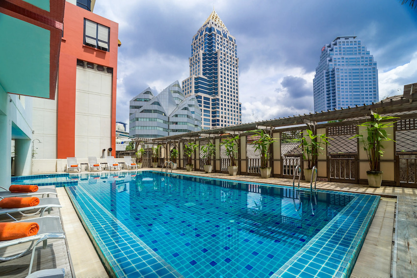 曼谷素坤逸 8 巷馨樂庭飯店位於曼谷中心地帶,距離百貨公司及Exchange Tower等主要商辦大樓均僅數步之遙。客房內均設有小廚房,還有頂樓游泳池、健身中心等設施,還能享受舒緩的傳統泰式按摩,住宿體驗非常好。