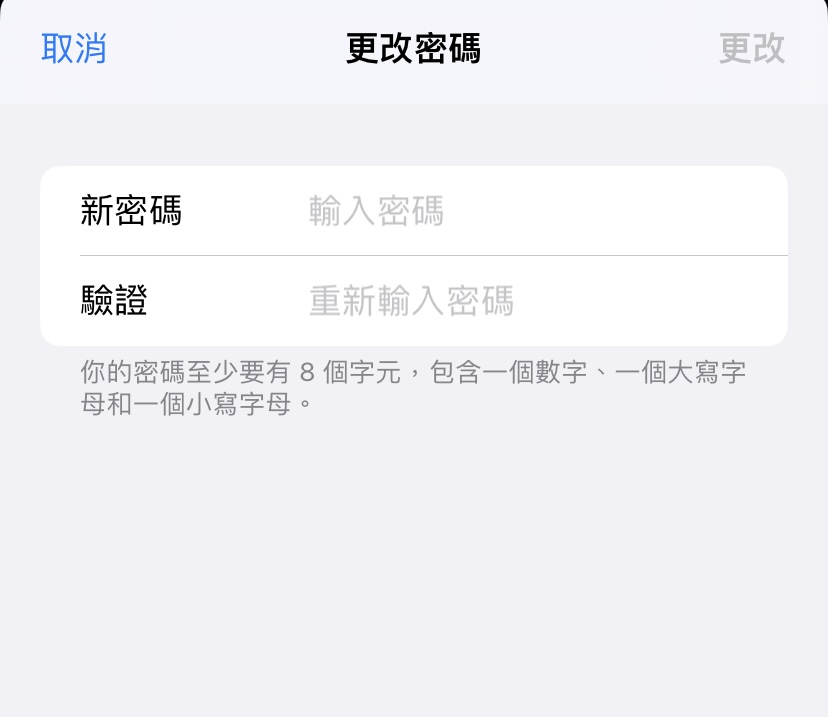 ▼4.重新修改新的Apple ID密碼,密碼要8個字元以上,並且包含數字、大小寫字母,而且不能用1年內曾經更改過的密碼。