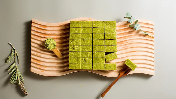這款九宮格抹茶可麗露是台灣的傳統裝飾花磚造型,搭配法國經典小點可麗露,集結抹茶內餡、微甜抹茶甘納許及滿滿抹茶粉,一次就能帶來多重濃郁茶香享受!