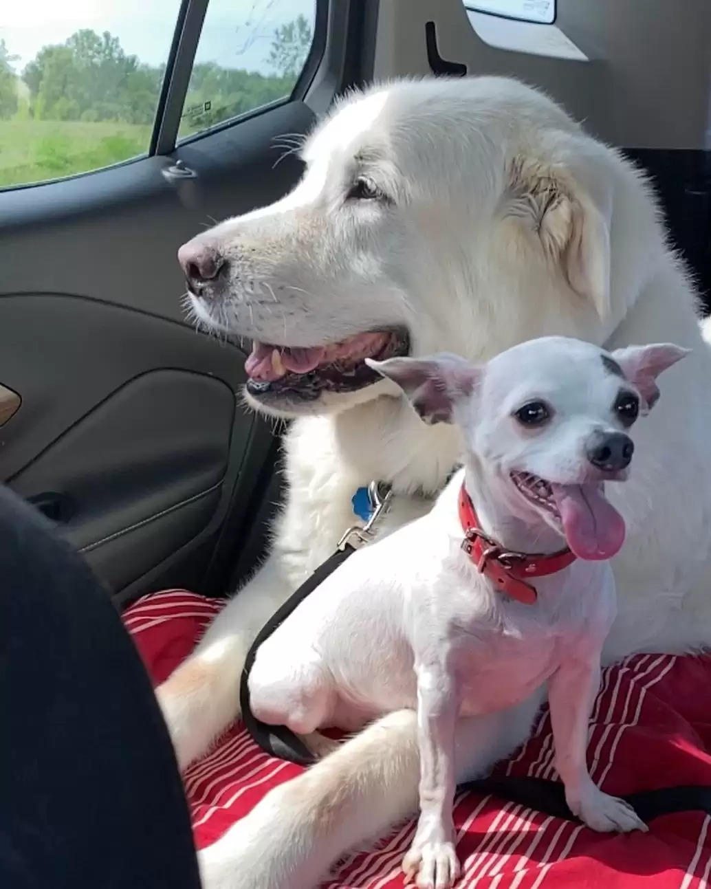2023年03月25日國外飼主Jenny Leech家中養了2隻狗狗,分別是體型較大的Ben和小巧可愛的Tim。Ben從小就在這個家庭中長大,而Tim是2016年時才加入進來的。2隻狗狗很快就成為好朋友,每天形影不離。Tim超愛趴在Ben的身上休息,Ben也不介意,任由對方把自己當成睡墊~