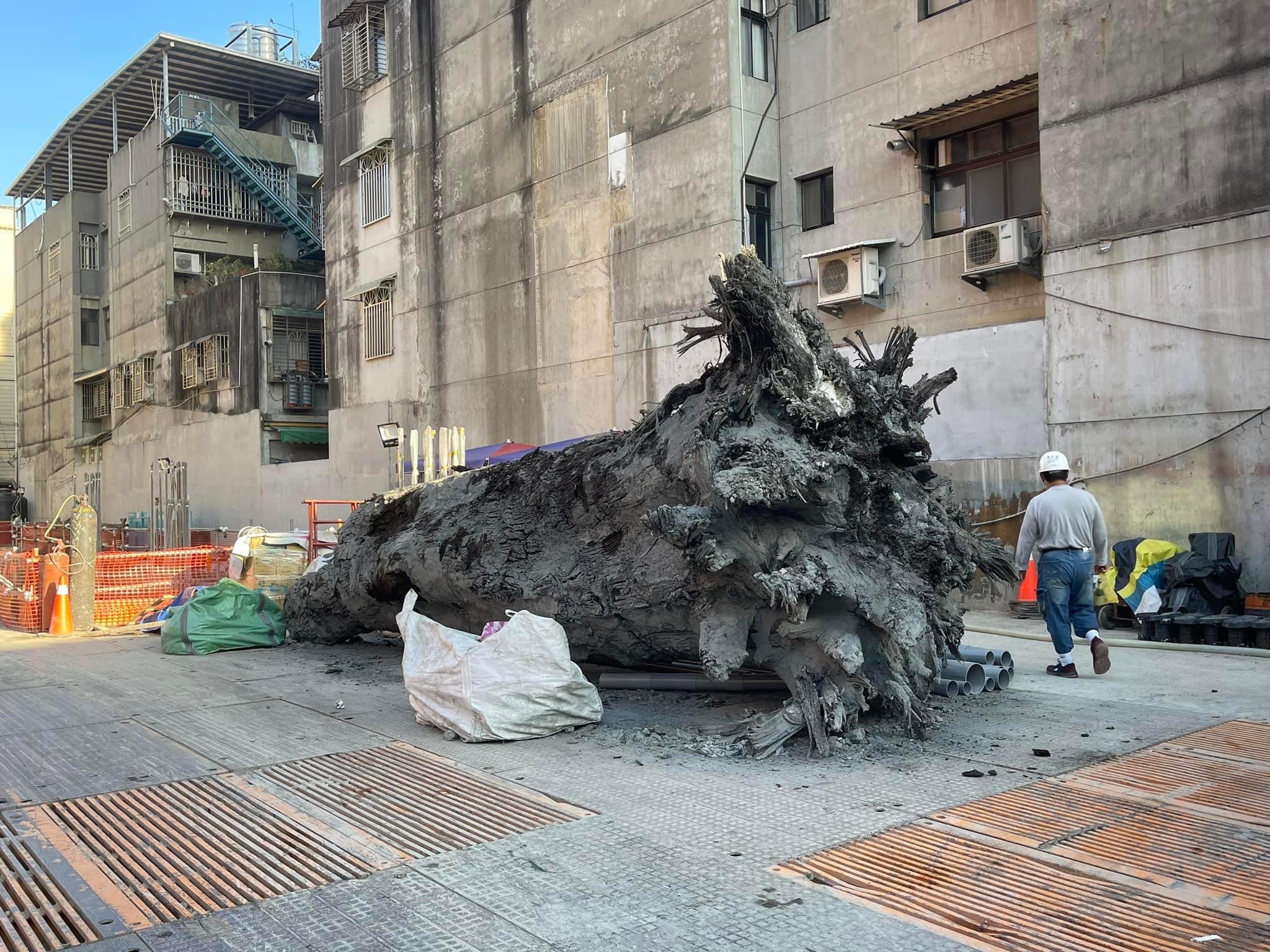 ▼網友們看到後紛紛表示:「下午有看到它路過…真的無敵大」、「上次中山路的米蘭文華也挖過一棵」、「2/21就挖出了」、「工地老闆要發了,但還是要看是什麼木種,大多都是樟木」。