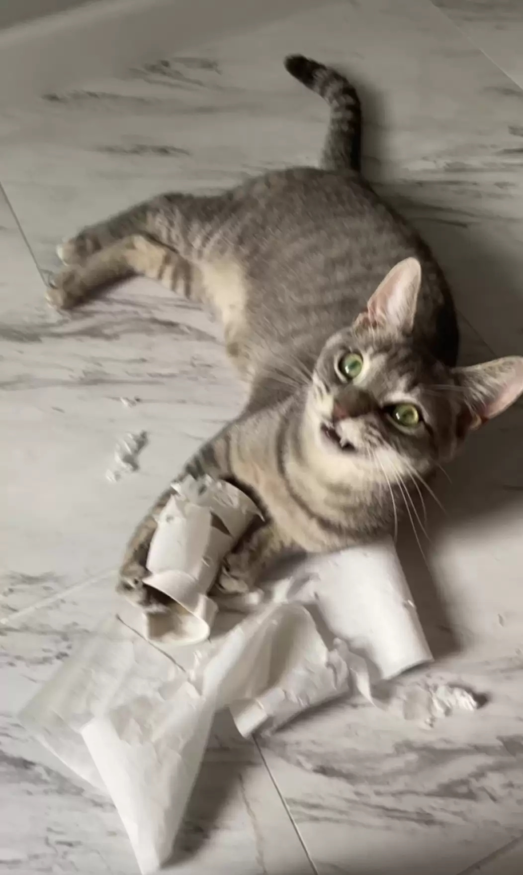 2023年03月25日大約2年前,國外網友Emily Chaplin和家人收養了一隻貓咪Coco。Coco非常可愛,但超級調皮。牠會偷偷鑽進衣櫃裡、從廚房裡偷食物、撕扯衛生紙。Emily說:「牠知道我們不允許牠在家裡搗亂,牠也知道那些事是錯的,但牠並不在乎。」為了時刻關注Coco的情況,家人在廚房中安裝了監視器,但Coco對此很不開心~