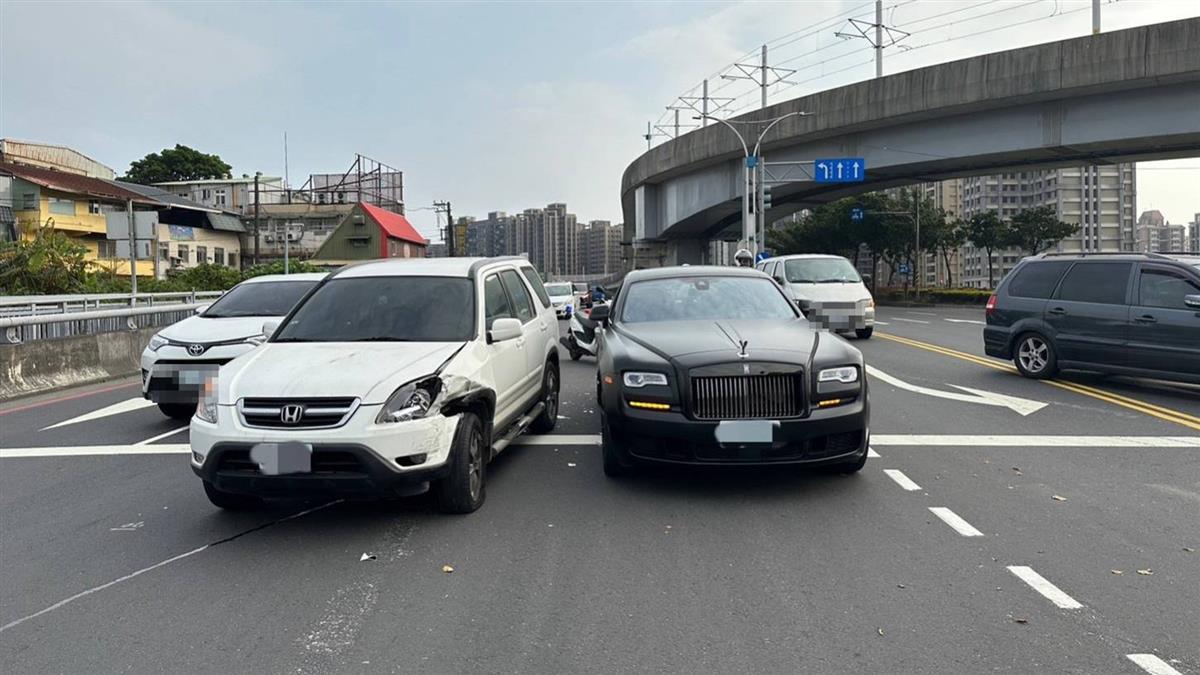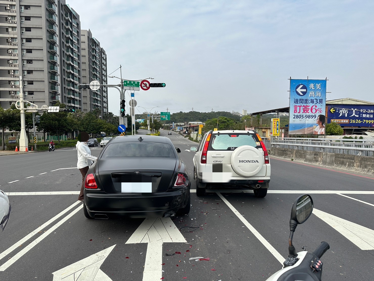 ▼據了解,25歲張姓女駕駛於17日下午3時許,駕駛休旅車從桃園出發,要去三芝找朋友,不料在淡水區淡金路一段與濱海路口,從後方撞上一輛正在停等紅燈的勞斯萊斯「鬼魅」。勞斯萊斯的右後方凹陷,保險桿毀損,燈殼破碎,休旅車也損傷不輕,幸好兩車駕駛都沒有受傷。