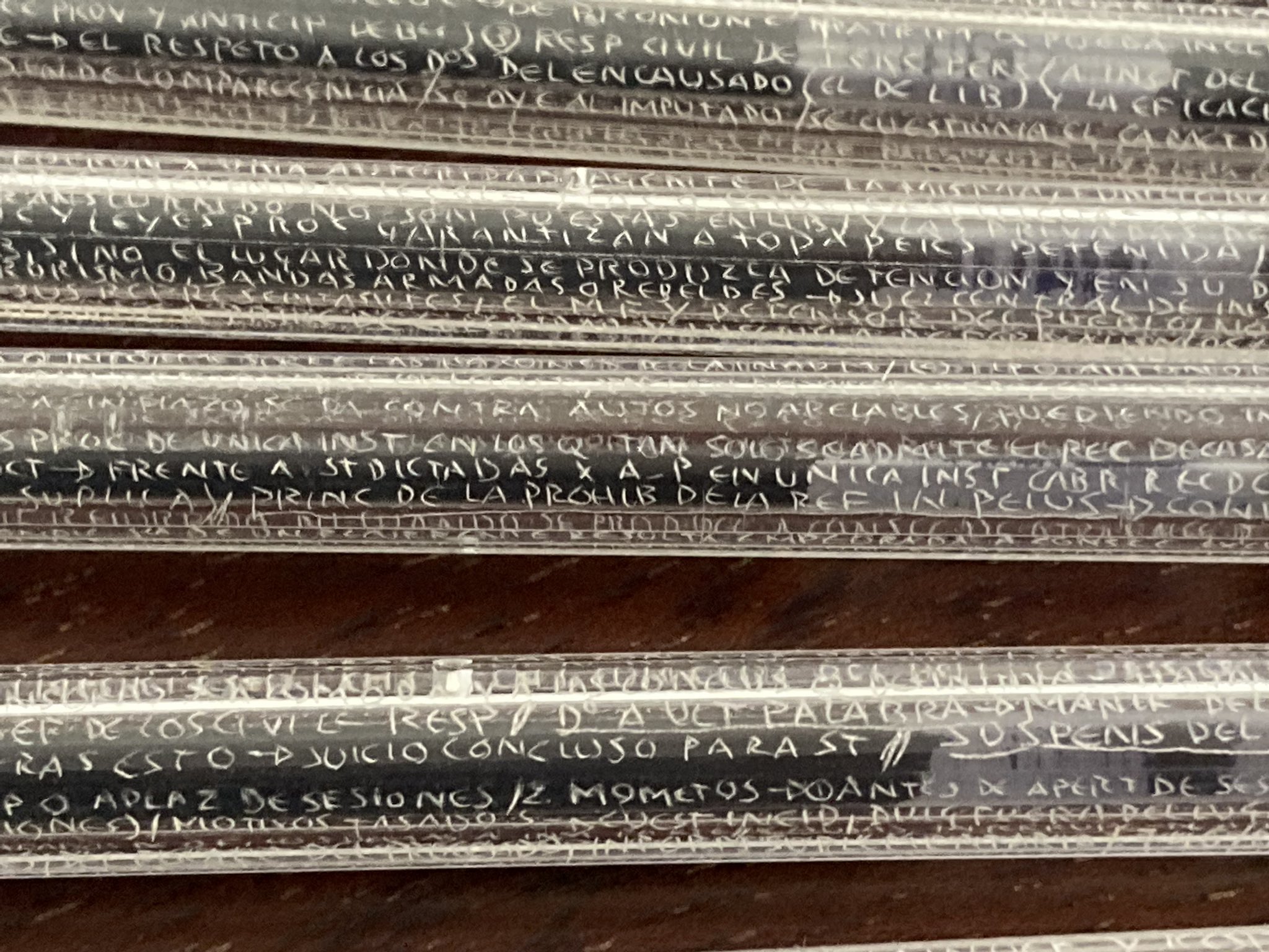 Haciendo orden en mi despacho he encontrado esta reliquia universitaria que confiscamos a un alumno hace unos años: el derecho procesal penal en bolis bic. Que arte! #laschuletasnosoncomoantes pic.twitter.com/3J4LMn0RQF