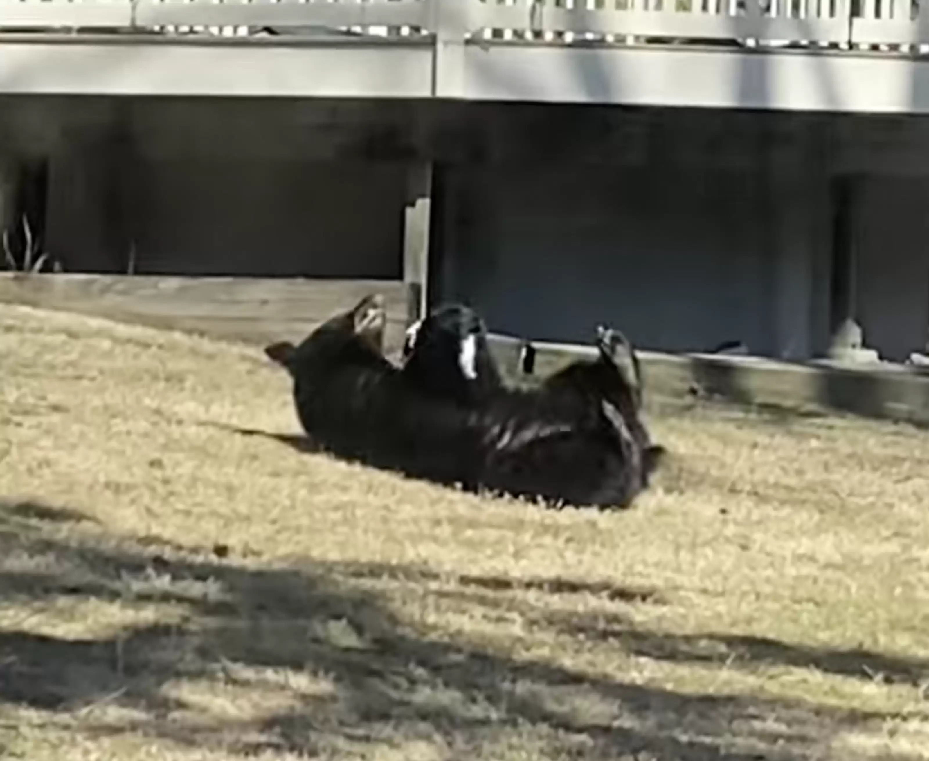 小孩們的後院「突然有訪客闖入」! 媽一看「小小黑影」開心玩耍:是頭黑熊