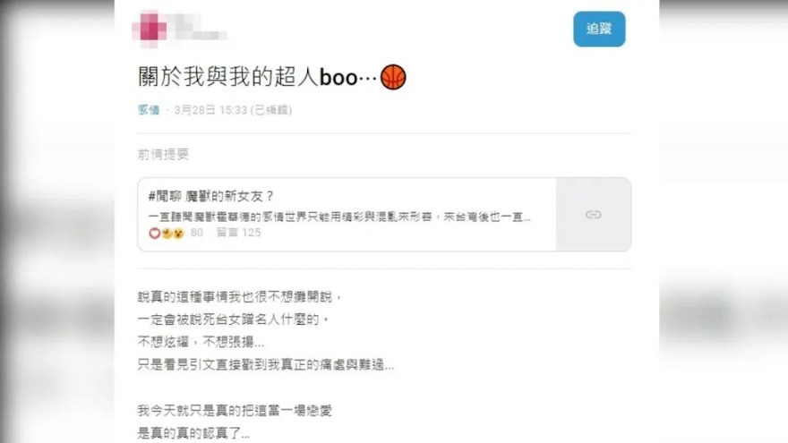 對此,魔獸所屬球團回應了。桃園永豐雲豹籃球隊指出,「球團不會過問球員私人交友狀態,謝謝大家的關心」。