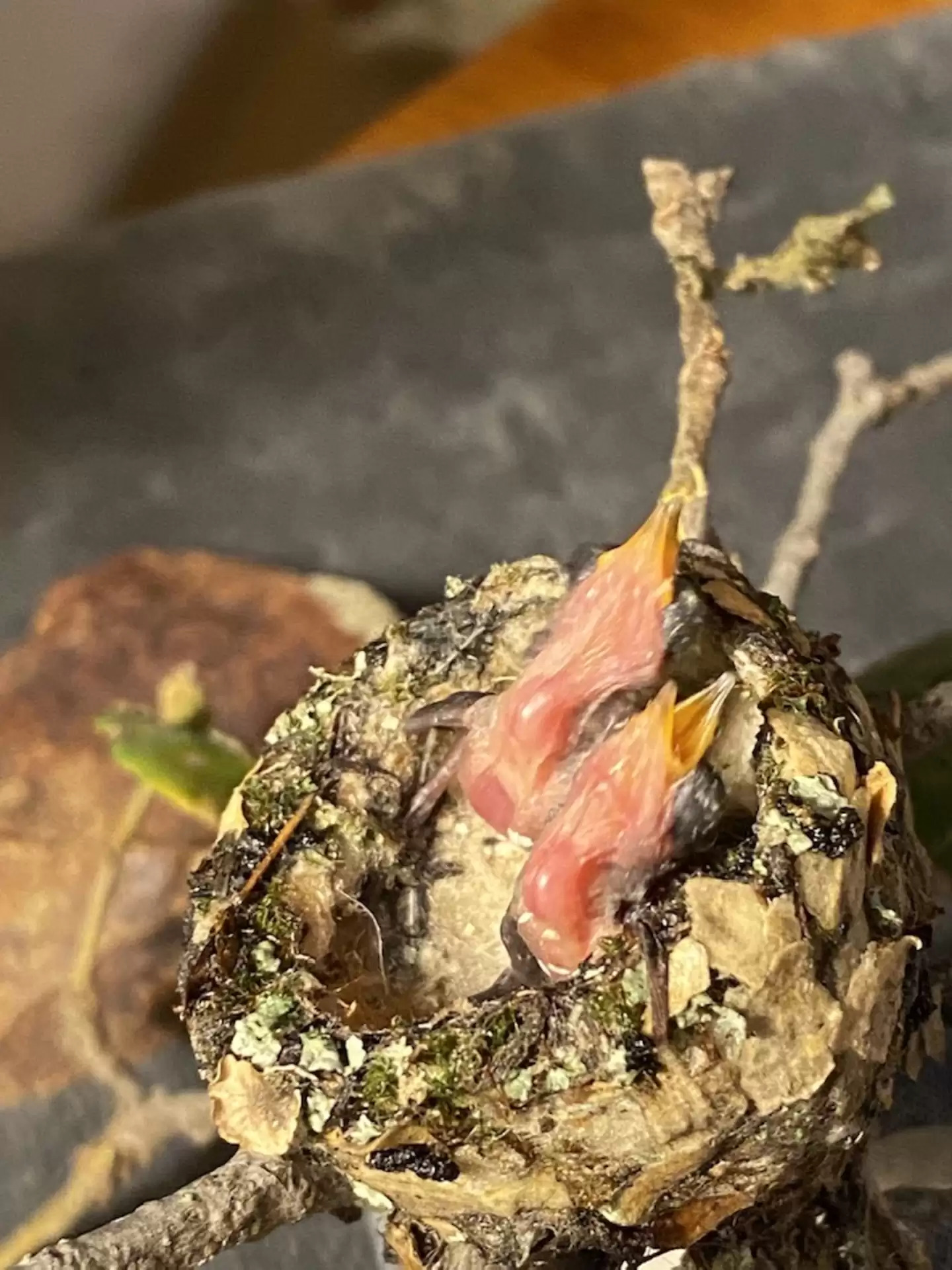 2023年04月28日今年3月,洛杉磯夫妻Sabine Hoppner和Deborah Ross發現家門外的一棵樹上築起了一個小小的鳥巢。原來有一隻雌蜂鳥準備在這裡孵蛋,孕育下一代。Sabine和Deborah一直默默觀察著這個可愛的蜂鳥之家,為2隻蜂鳥寶寶成功孵化而興奮,但接下來卻遇到了麻煩。