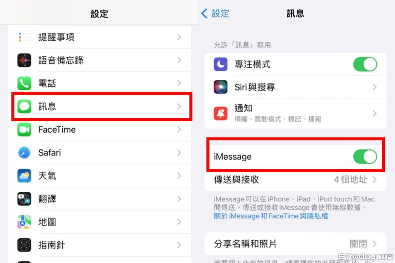 ▼蘋果用戶可至手機設定→訊息→把iMessage關閉。不過如果平時與親友是用iMessage訊息聊天,關閉這一功能後,可能會變成收費訊息。