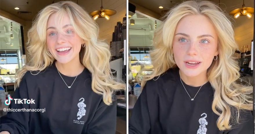 ▼這名女店員其實是一名叫Jenna的網紅,她經常在網路上分享自己的生活日常。最近她分享了一段自己在咖啡廳工作的影片,只見她面對客人露出一抹開朗的微笑,一頭蓬鬆的金髮顯得俏皮可愛。與客人對話時,她一會兒睜大雙眼、一會兒困惑皺眉,這些小表情非常靈動,簡直就像迪士尼公主來到了現實世界。