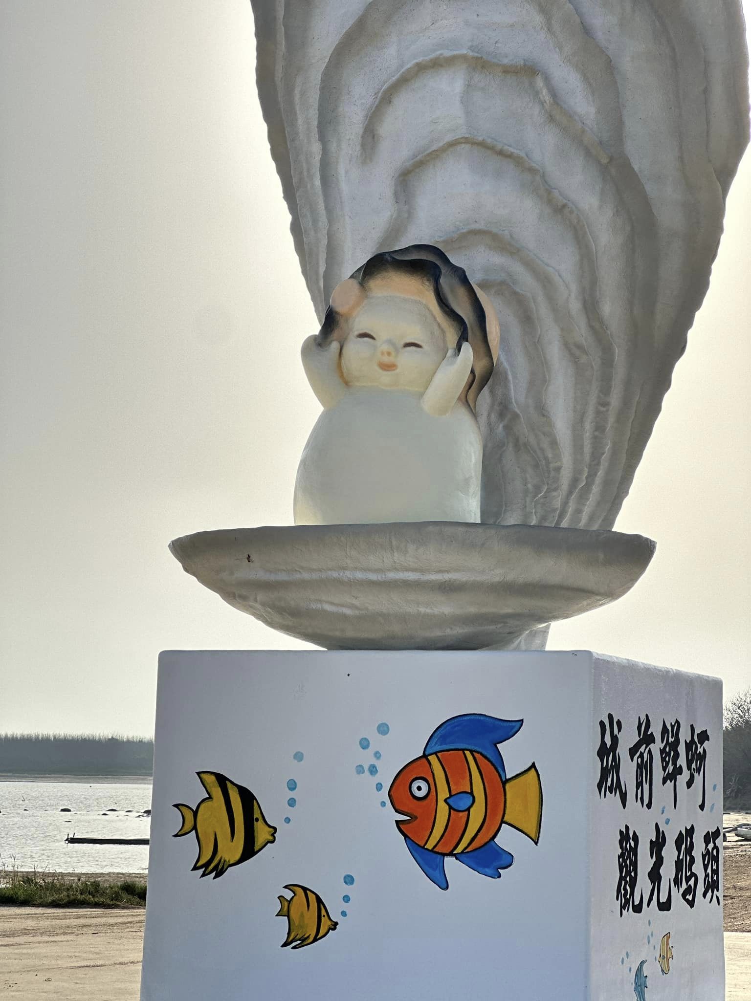 2023年04月18日日前有網友發現,澎湖縣白沙鄉城前社區出現一個新地標「城前鮮蚵」,巨型牡蠣中有一個短髮女性造型的牡蠣精,一手比讚一手比耶,下半身圓滾滾的,笑咪咪的表情看起來十分慈祥。不少網友看到後直呼:「想去朝聖!」