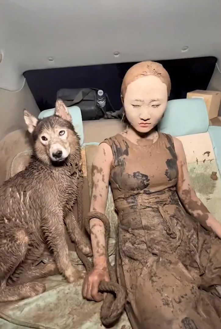 2023年04月25日大陸河南省鄭州市有一名飼主養了一隻哈士奇,日前她帶狗狗出門散步,沒想到狗狗太貪玩,竟突然暴衝,還跑到泥坑裡翻滾。飼主趕緊上前阻止,但泥坑邊太溼滑,她不小心失足掉了進去,全身都沾滿泥巴。飼主本想將狗狗送到寵物沙龍洗澡,但被拒絕,最後只好親自上陣收拾殘局~