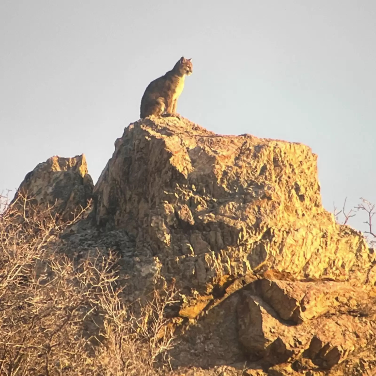 2023年05月04日美國猶他州網友Denise Peterson是當地山獅保護組織的創始人,日前她徒步旅行時,突然看到峽谷對面的一塊岩石上有一隻年輕山獅。牠一邊曬太陽一邊眺望遠方,看起來非常可愛。Peterson說:「牠正坐在高處俯視山谷,這一幕太罕見了!」