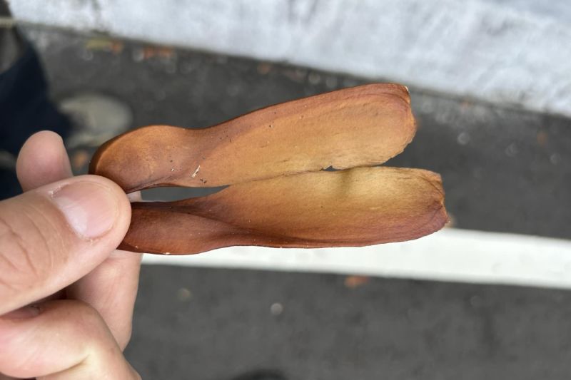 ▼原po在臉書社團「爆廢公社」分享了一張手中拿著兩個棕色長形物體的照片,並寫道「小時候的回憶」。這則貼文迅速引起網友們的共鳴,有人認出這些物體是「桃花心木種子」,將它們丟向天空就會慢慢轉圈落下,所以也被稱作飄飄葉、小飛機、竹蜻蜓。