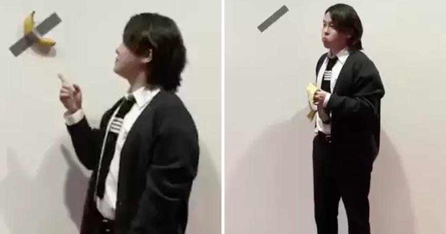 館方傻了!男大生看展「沒吃早餐肚子餓」 一口吃掉「360萬香蕉藝術品」