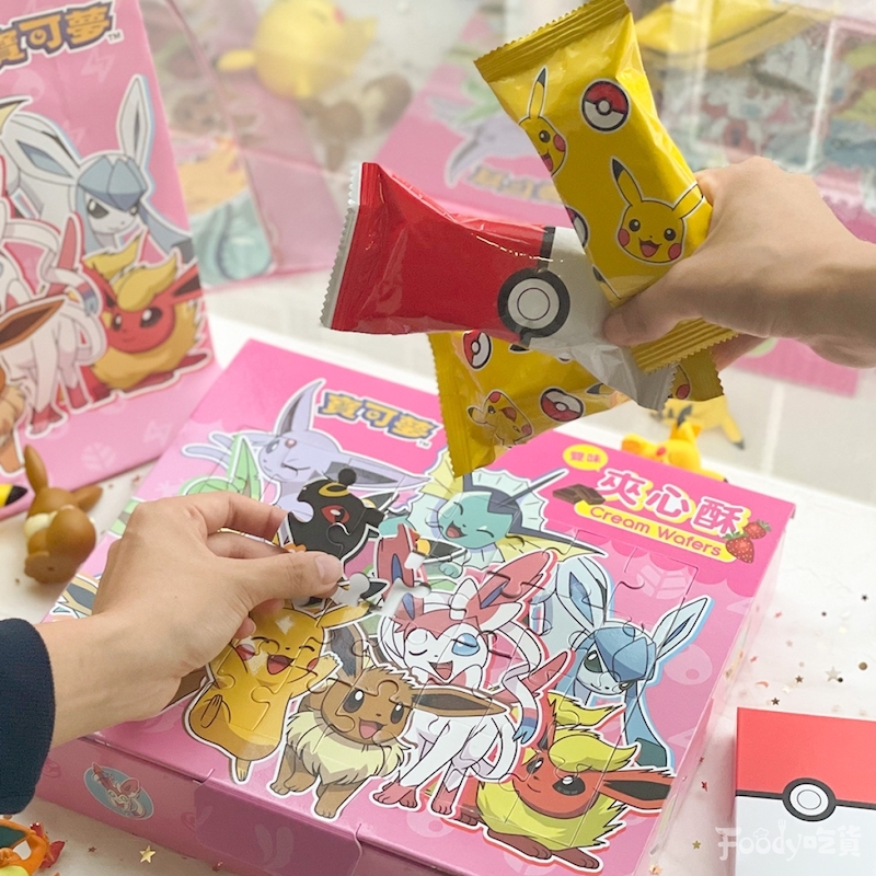 ▼「寶可夢拼圖夾心酥禮盒」內含巧克力和草莓2種風味的夾心酥,還附贈寶可夢撲克牌一盒!夾心酥香脆涮嘴,有精靈球和皮卡丘單獨內包裝,適合跟親友分享。禮盒還能當拼圖,是皮卡丘和各種屬性伊布大集合,只看就讓人超心動!原價569元,特價優惠只要349元,零食控快點搶購!