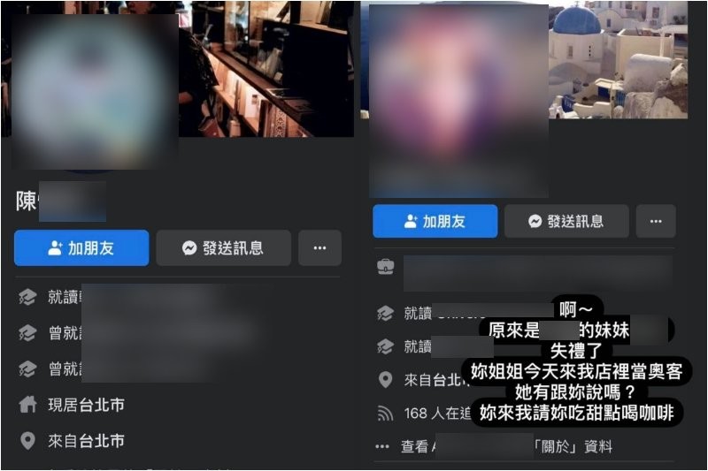 ▼店家在晚間看到Google評論後,直接肉搜陳女的臉書並po上網,還把陳女臉書中的照片合成,甚至拿出來評論狠嗆,在IG限時動態中說:「請問我們店家從頭到尾做錯什麼,XX,妳真的很鬧欸,妳可以評論店家,店家也有權利評論客人,尊重兩個字都做不到,妳早該識相離開,我還讓你倒杯水吹個冷氣再走,妳以為我開的是行天宮喔?」後來咖啡廳還公布監視錄影的影片,繼續評論陳女。