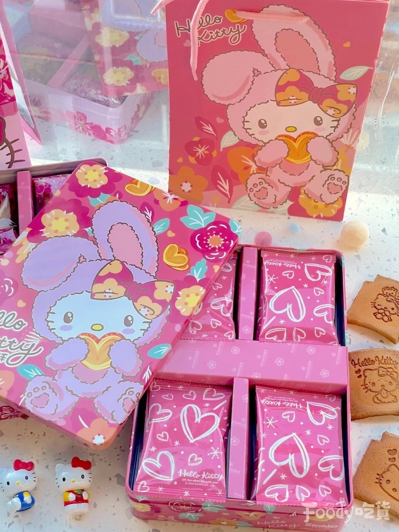 ▼超療癒的「Hello Kitty蝴蝶酥禮盒」來囉!粉色的盒子上印有超萌Hello Kitty兔兔圖案,桃紅色花花設計萌力爆表!禮盒附有專屬提袋,2面有不同圖案,送禮時更有質感。蝴蝶酥口感酥脆,奶油香氣濃郁,外圈還有細膩糖粒,豐富的層次讓口感加倍!原價599元,特價優惠只要349元,快點吃起來吧~
