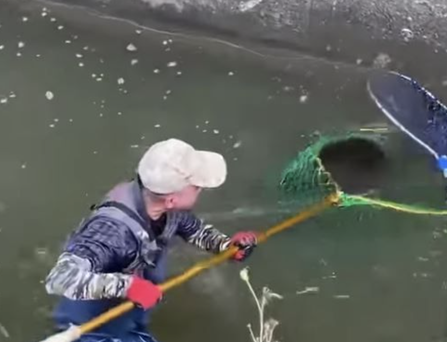 ▼新豐鄉瑞興村村長李兆恩表示,他21日上午10點多接獲鄉親通報,稱鄉內一處溪水附近有動物受困。他趕到現場後才發現是1隻水豚,於是通報縣政府及相關單位處理,水豚的飼主後來也到場。眾人拿著大網子在溪水捕撈,水豚先是潛水閃過緝捕,後來又在水中拚命掙扎,最後終於被抓進籠子。