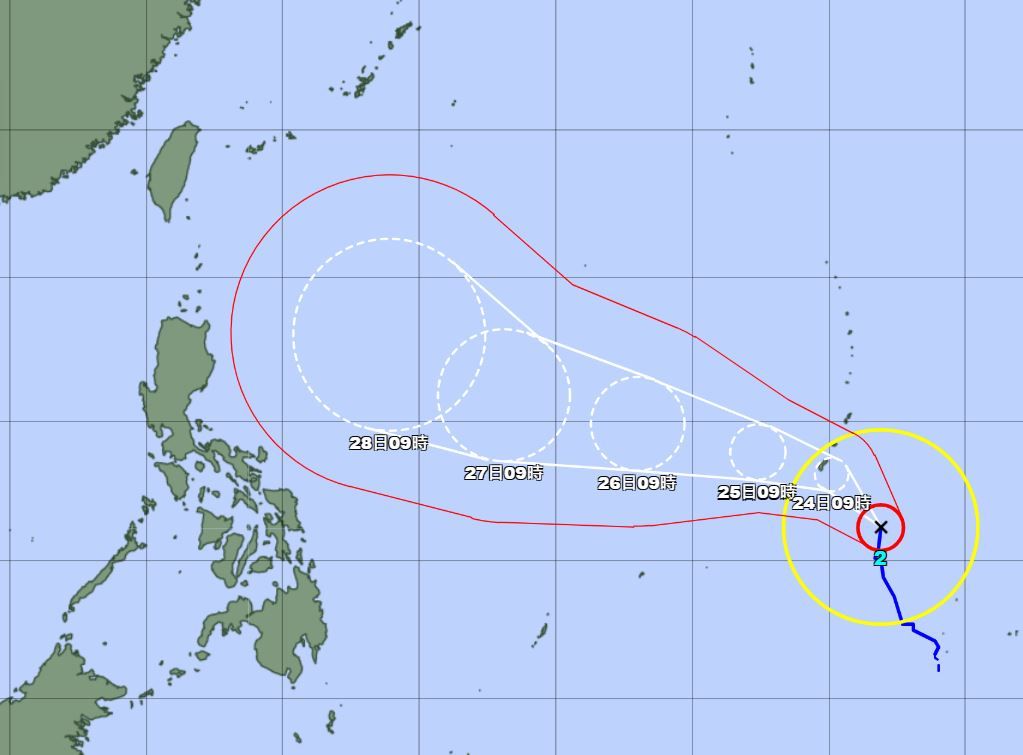 第2號中度颱風瑪娃(Mawar)來勢洶洶,日本氣象廳22日晚間表示,瑪娃已轉為「強烈颱風」(44m/s≤ 最大風速 < 54m/s),預計26日轉為「猛烈颱風」(54m/s≤ 最大風速)。而根據中央氣象局的定義,瑪娃目前仍然屬於中颱(32.7m/s≤ 最大風速 < 50.9m/s),預計今、明(23、24日)有機會發展成強颱。