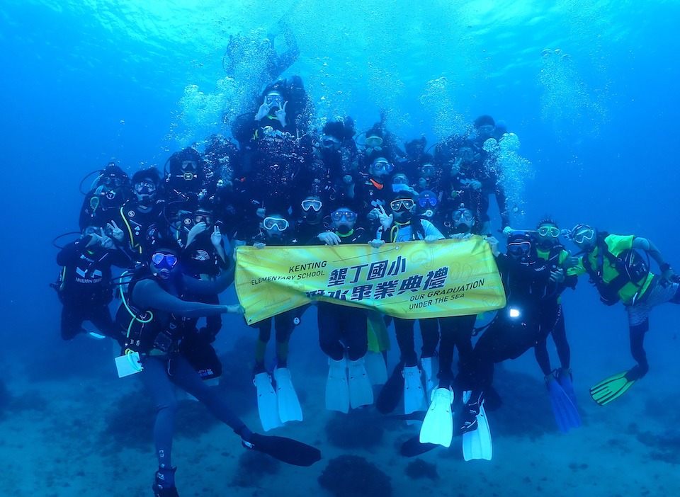 ▼事實上,墾丁國小一直致力於推動海洋教育,「從一年級親海戲水、二年級就開始浮潛訓練、三年級基礎自由潛水、四年級SUP訓練、五年級衝浪挑戰,而歷經多年的海洋訓練,六年級畢業生就要挑戰海洋教育的最高殿堂,實際潛入海中,領取潛水畢業證書」。