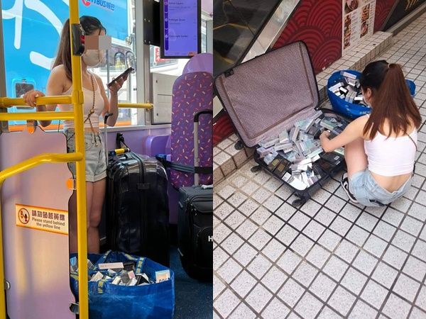 網友們看到後紛紛留言說:「好多有愛心的男士幫忙撿」、「根本環保戰士」、「只要自己不尷尬、尷尬的就是別人」、「大寫的尷尬」、「香港終於也有伴手禮了」。有網友在留言處分享在公車上遇到這名女子的畫面,推測她可能是代購或幫忙打廣告的人。