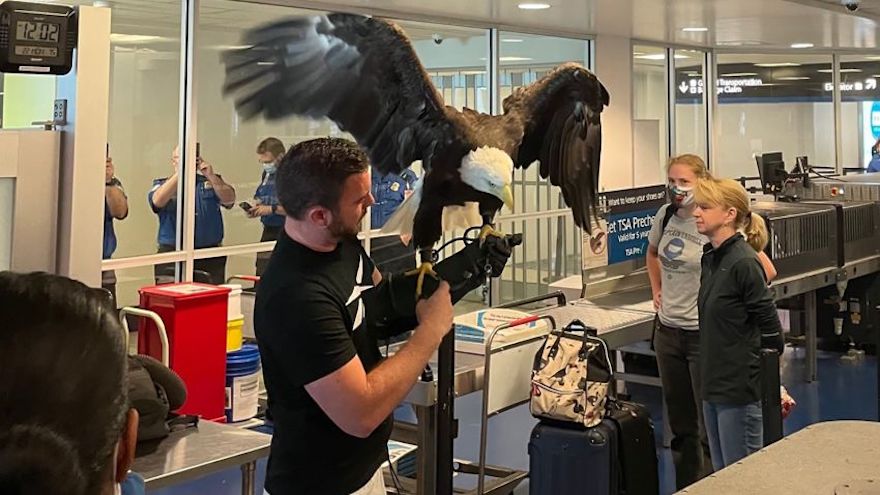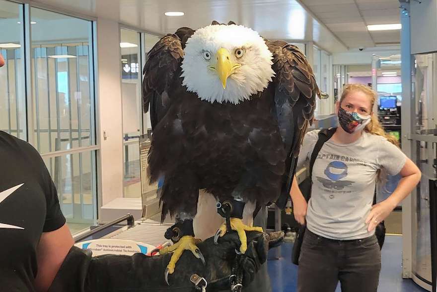 本鵰不飛了!白頭海鵰搭飛機「乖乖排隊過安檢」 眼神逗笑網:好可愛