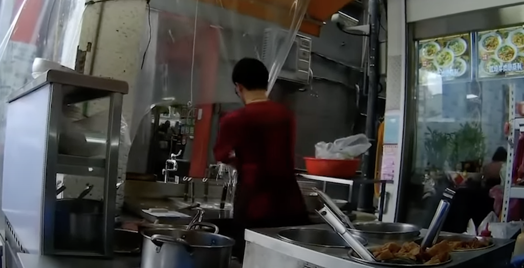▼外送員表示,他在等店家備餐時,看到店員將抹布水擰入湯鍋,當下就覺得反胃噁心,並決定以後再也不會來用餐。不過外送員公布的影片日期顯示2020年,引發不少質疑。對此,外送員解釋是秘錄器太久沒用、時間設定跑掉,拍到畫面的時間是中午11:58左右。