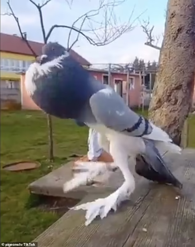 ▼據外媒報導,影片中的鳥類是一隻英國信鴿(English Pouter),不過目前未知確切的拍攝地點。專家認為,這隻鴿子的體型如此特別,應該是經過多年選擇性繁衍的結果。雖然英國信鴿在英國與其他歐洲國家都很常見,但長成影片中這樣的「異形鴿子」還是嚇壞不少人。