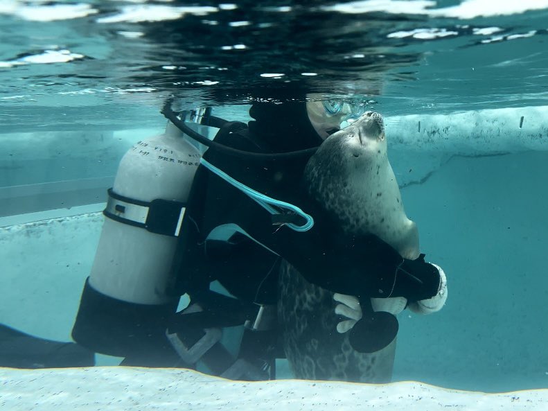 大阪海遊館中有一隻超可愛的環斑海豹「Mizore」,牠非常黏人,每次潛水員清理水族箱,都會跑過來撒嬌求抱抱。潛水員無法抵擋牠的可愛魅力,只好抱緊處理。牠瞇起眼睛、露出甜蜜笑容的模樣太療癒,網友們都被牠萌翻了~