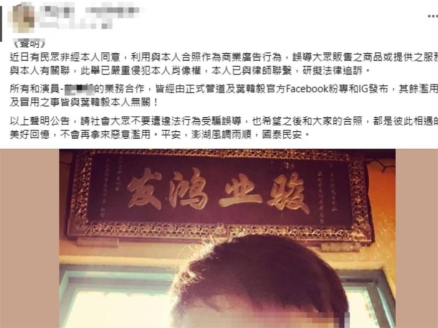 ▼因為餐廳老闆一直沒有刪除照片,所以高捷發聲明說「本人已與律師聯繫,研擬法律追訴」。直到7月4日上午,餐廳老闆終於將合照刪除,並編輯內文。他將原先po文內宣傳的套餐菜色、價格、包場人數、聯絡方式等內容刪除,只留下寒單爺和高捷出演電影《寒單》的介紹。