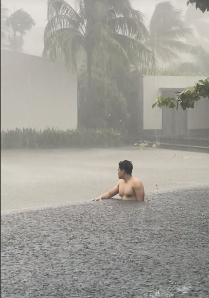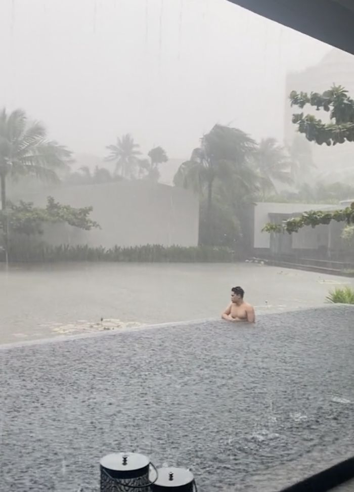 去年7月,這名網路暱稱為「Mr.HB」的男子到富國島度假。為了這次出遊,他辛辛苦苦存了1年的錢,出發前興高采烈,到達目的地後卻大傻眼,因為當地正好是雷雨天。他苦中作樂,冒雨到飯店泳池拍照,並將遊玩照片po到TikTok上,很快就引發討論。