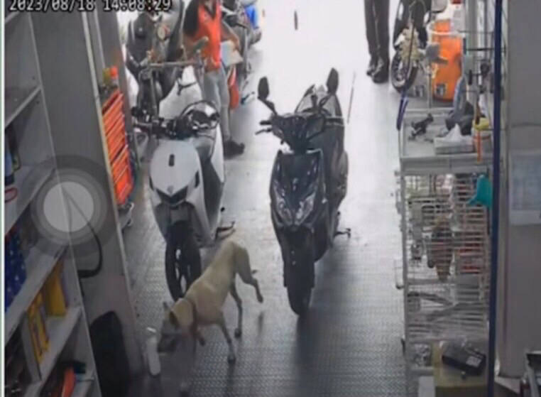 2023年08月31日日前台中市一名飼主帶著毛孩去西區公園散步,沒想到期間毛孩走失,竟一路跑到西屯區,逕自走進一家機車行內,還自行爬上樓休息。老闆見狀大傻眼,連忙向警方求助。員警發現狗狗佩戴項圈,應該是有人飼養的,隨即將狗狗抱到動物醫院掃瞄晶片,最後順利聯繫上飼主,將這隻調皮的狗狗送回了家。