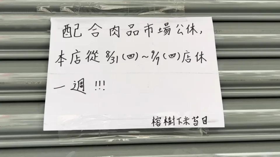 有網友貼出「榕樹下米苔目」店門口公告,上面寫著「配合肉品市場公休,8月31日到9月7日店休一周」,猜測可能是因為阿嬤過世加上配合肉品市場公休,才會店休一周,歇業消息只是一場烏龍。不過對此店家尚未回應。