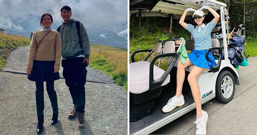 ▼孫藝真29日曬出幾張打高爾夫球時拍的照片,並說「我有比較好看嗎?他的拍照技術正在進步!」文中的「他」自然指的是先生玄彬。照片中的孫藝真確實非常漂亮,腿長比例很好,照片取景也不錯,粉絲們紛紛留言稱讚:「有進步!『他』真是一位受過專業訓練的IG美照丈夫」、「您的『專屬攝影師』盡力了!照片沒拍爛」。