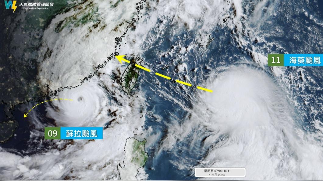 2023年09月01日海葵颱風路徑南修,預估將於週末直撲北台灣,甚至可能由東往西「穿越台灣上空」,恐成為4年來首個中心直接登陸台灣的颱風,目前預測宜、花登陸機率高。氣象專家提醒,未來海葵移動速度有放慢趨勢,自宜蘭登陸時間恐拉長,其暴風圈也將籠罩全台。