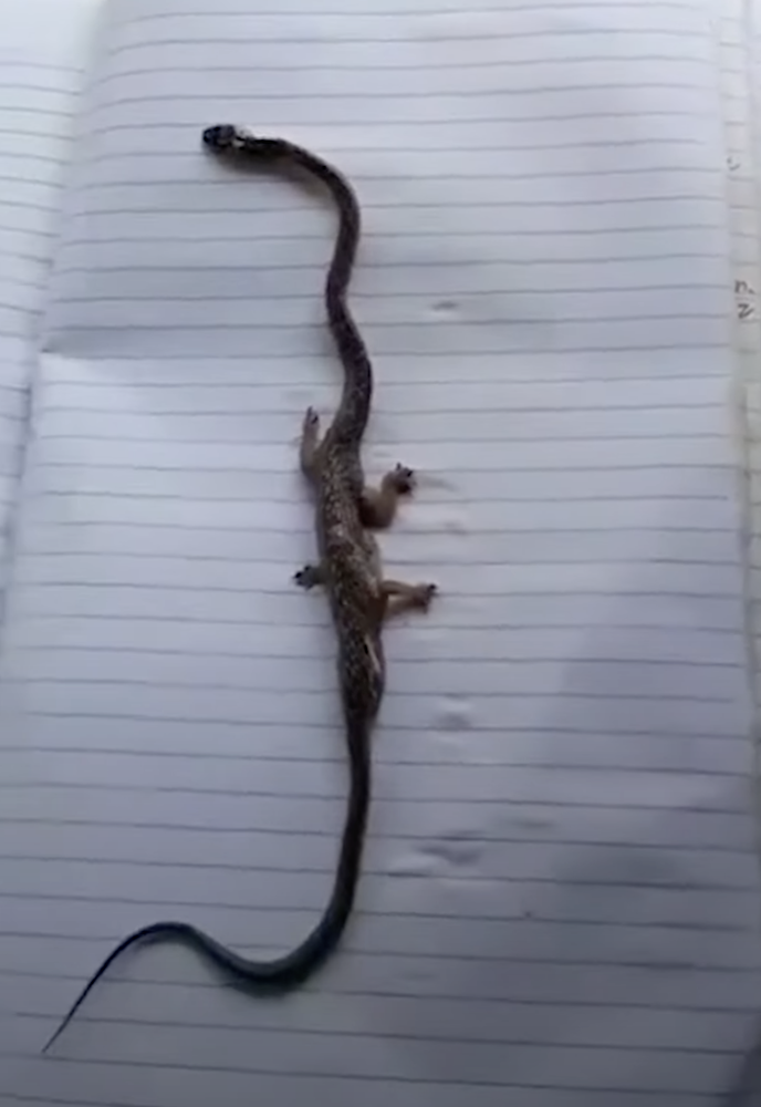 2023年09月11日近日,菲律賓甲米地省(Cavite)坦札市(Tanza)的一個村莊裡出現了一條外型奇特的蛇,牠的頭部和尾巴像普通蛇,但長有4隻腳,看起來非常奇怪。這條長約30公分的蛇腹部異常突起,四腳分明,脖子很長,外型酷似迷你腕龍。這一消息在網路上傳開後立刻引發討論。