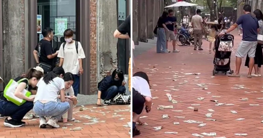 散財童子沿路撒錢!高雄駁二「美金滿天飛」路人狂撿 真相曝光