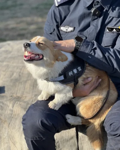 首隻「柯基警犬」曝光!上街巡查「只有牠被背著走」 訓練員:別的狗走1步抵牠3步