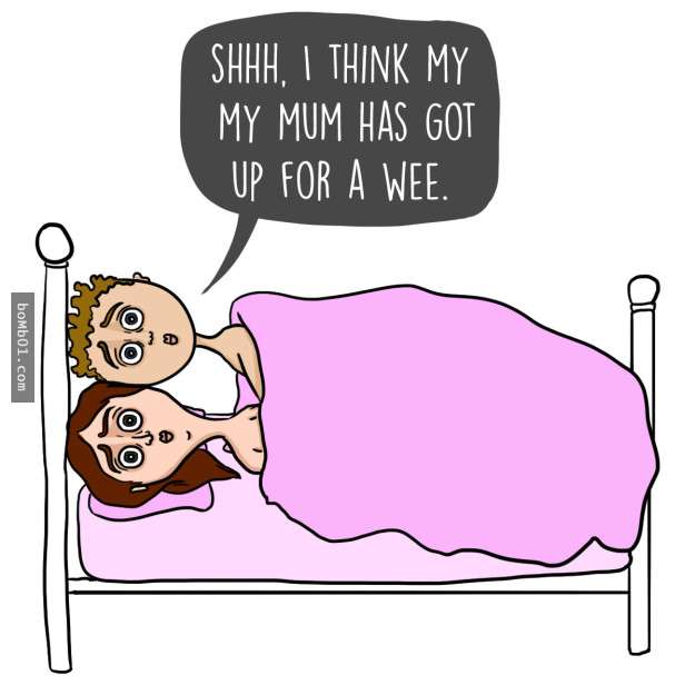 ▼3. 第一次在家裡和對方來一場緊張萬分的「啪啪啪」。「噓…我媽好像出來上廁所了…」(緊張屏息)