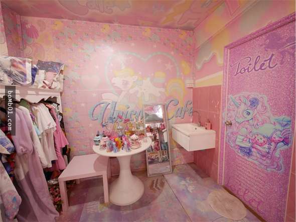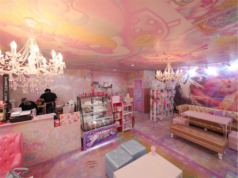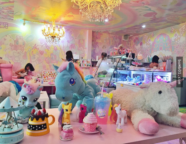 ▼先來看看獨角獸主題餐廳(Unicorn Café)的設計,它的牆壁刷上了唯美浪漫的粉紅色,不算大的店面卻佈置得非常精緻,裡面全都是少女最喜愛的粉嫩色系和傳說中的獨角獸,整個氣氛萌到不行。