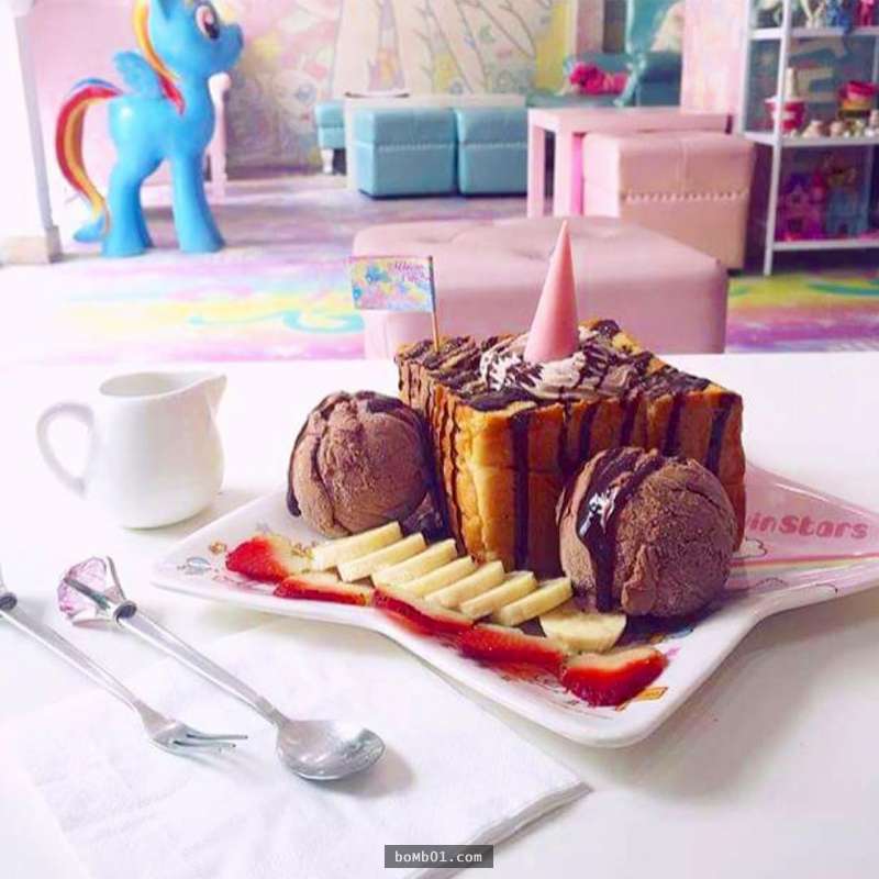 ▼有這麼浪漫的環境,當然也要搭配最棒的甜點才行,像是這款色彩繽紛的星星飲料、漸變色的彩虹蛋糕、及萌獨角獸水果吐司都好,每一樣餐點都看起來美味又夢幻,讓人宛如身處在神奇的童話國度裡。