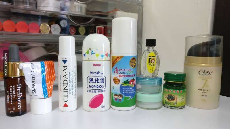 ▼最後是頂樓Penthouse的高個子住戶們,各式保養品、痘痘藥和蚊子藥。