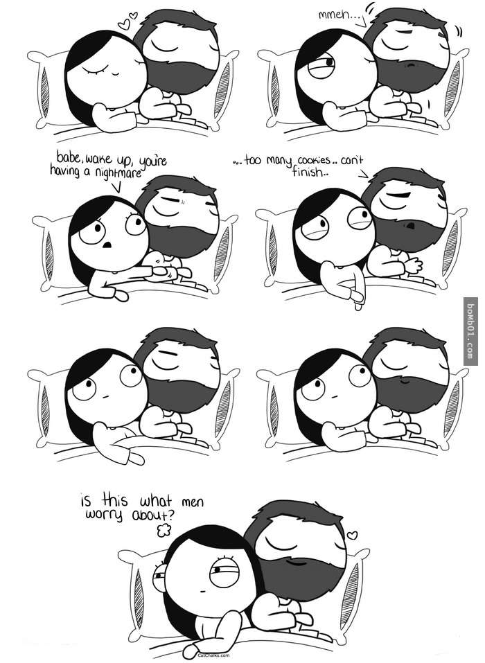 ▼在睡覺時突然聽到男票說夢話:「寶貝,你做惡夢了」「太多的菜,要做不完了」,女票納悶「難道這就是男人的噩夢。」