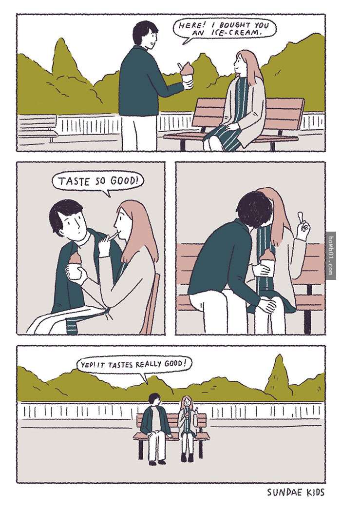 戀愛不一定像偶像劇中那樣轟轟烈烈,日常相處中的點點滴滴才是愛的表現,偶爾的一點小浪漫就能讓整顆心都飛起來。不過最後一張插畫中的事最好不要做,因為這樣赤裸裸秀恩愛太危險,如果旁邊的朋友還是單身,那就要做好被打的準備了。