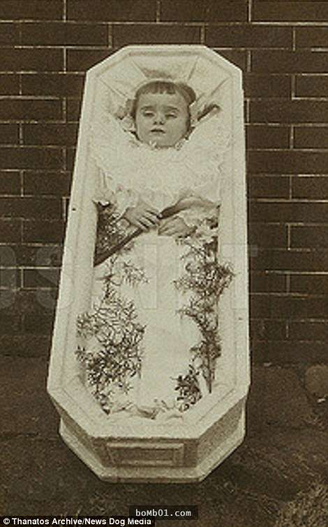 ▼在那個傳染病十分盛行的年代,許多兒童還來不及長大就因染上白喉、斑疹傷寒、霍亂等流行病死亡。許多悲傷的父母親們,為了留下永遠的紀念,特地請來攝影師,拍下孩子入殮前的最後身影。