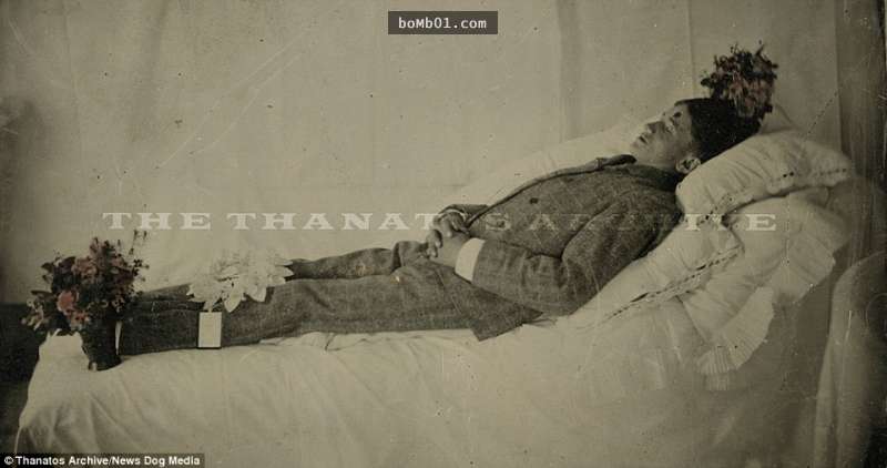 ▼當然,為死去的家人拍照不一定只針對兒童,只是當時因傳染病突然死亡的絕大多數都是兒童。下面照片中的男子,額頭上還留有疑似彈孔的痕跡。