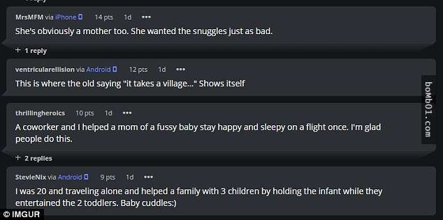 ▼對於這位女士的友好,許多人也猜測「她應該也是一名母親,可能已經想抱寶寶很久了」,也分享了自己乘搭飛機時的體驗,「我今年20歲,曾經在一個人搭飛機時幫助一對帶著3個孩子出門的父母,替他們抱著寶寶,讓他們可以安撫和照顧另外2個孩子」,留言處也充滿了人間濃濃的溫情,把大家的心都暖化了!