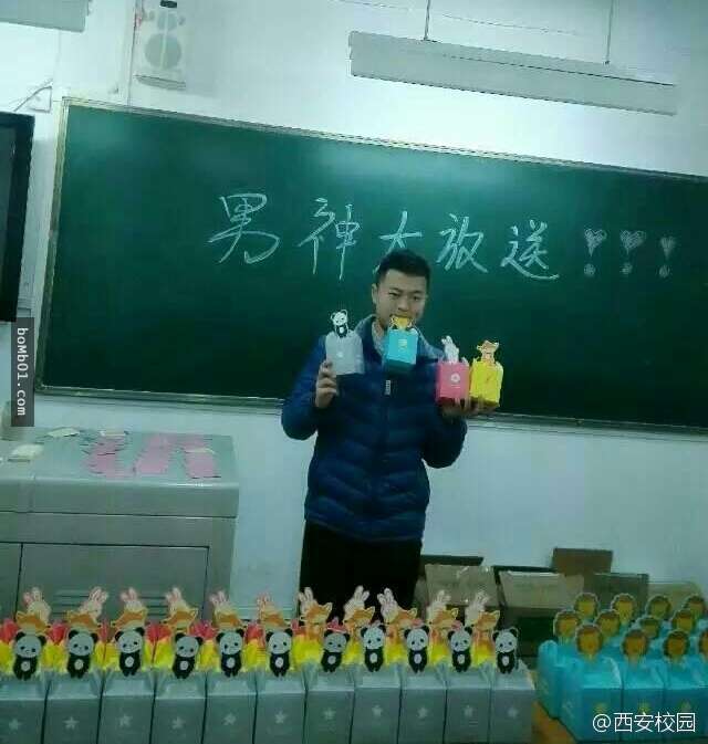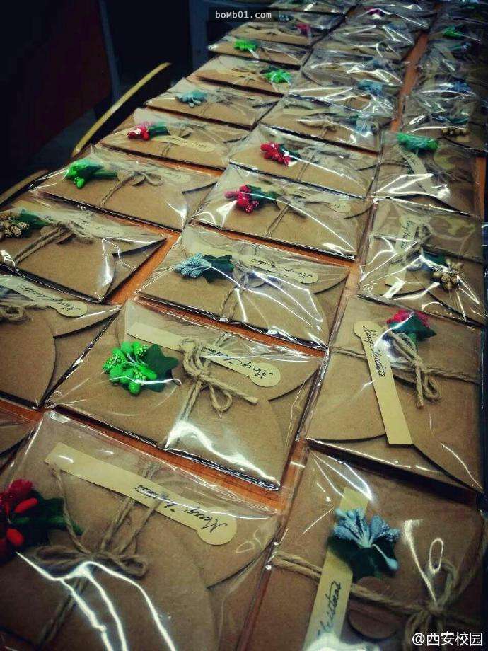 2016年12月23日這個耶誕節有人給你送禮物嗎?單身的人看到身邊的朋友收到溫暖的禮物,心裡難免酸酸的。西安翻譯學院14級漢語國際教育專業的女生們就不會有這樣的困擾,因為她們班唯一的男生兼班長,會在節日這天拿出自己的獎學金和打工賺來的錢,為班上的37位女同學買禮物、親手寫卡片。