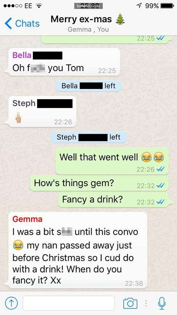 Tom建了一個「聖誕前快樂」群,把Gemma、Bella、Steph、Lisa四名女生都加了進去。