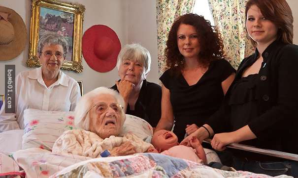 ▼這位老奶奶111歲,旁邊的孩子才出生沒多久,6代人同時出現太溫馨。